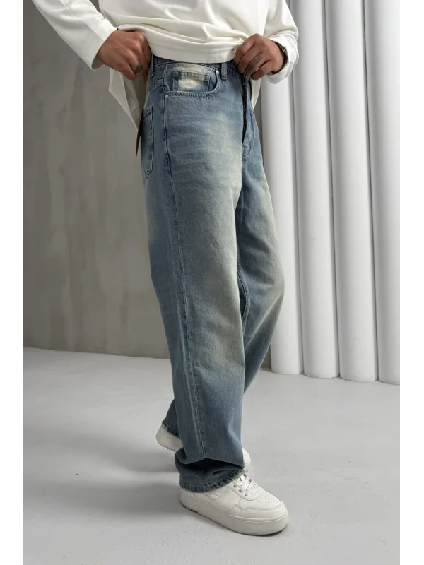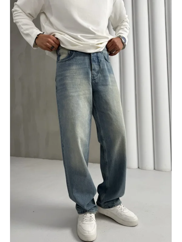 Yıkamalı üç iplik şardonsuz baggy pantolon lacivert