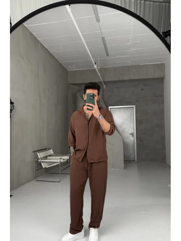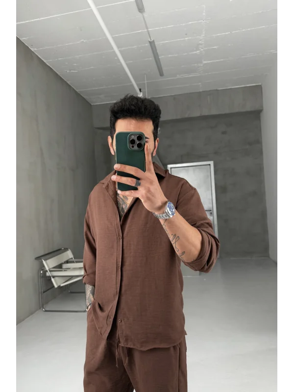 Kahverengi Pera keten takım