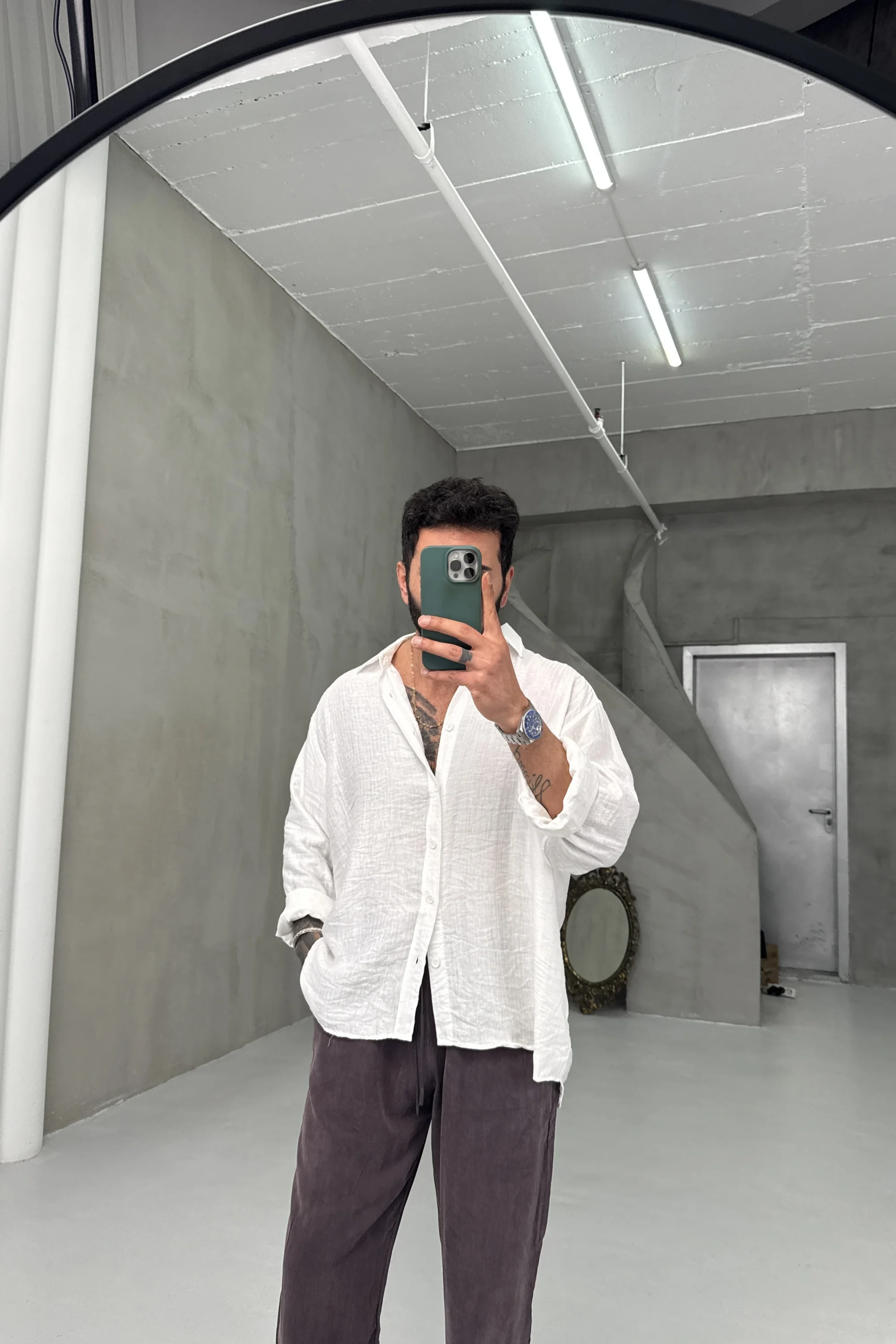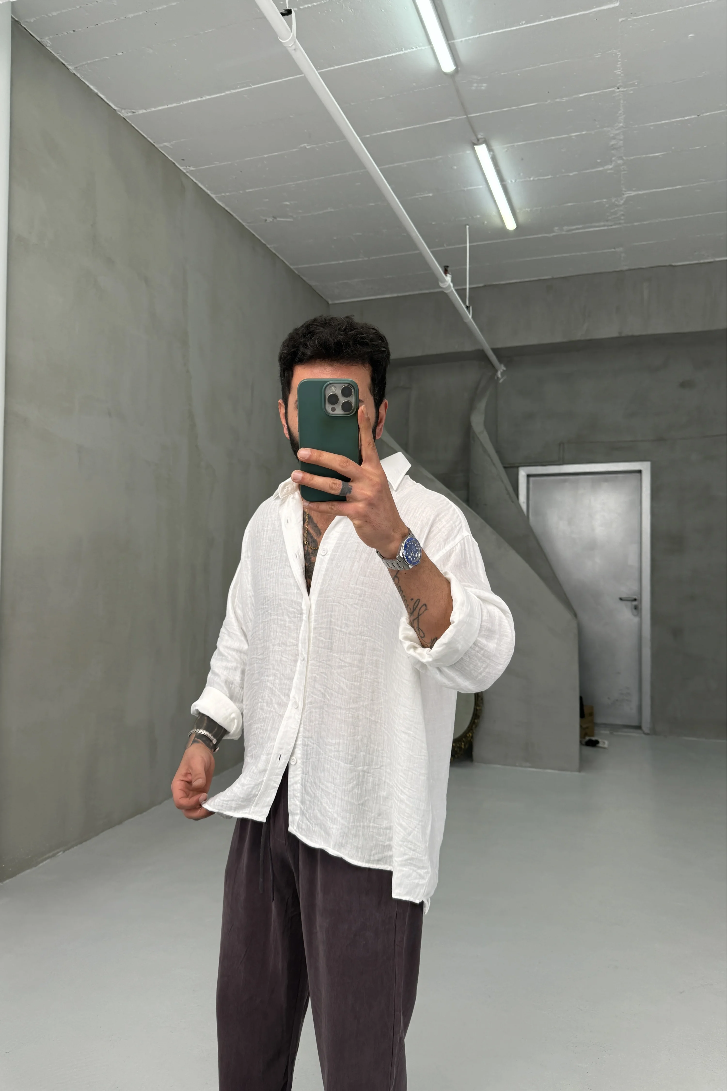 Yüksek kalite oversize Giesto Tencel gömlek.