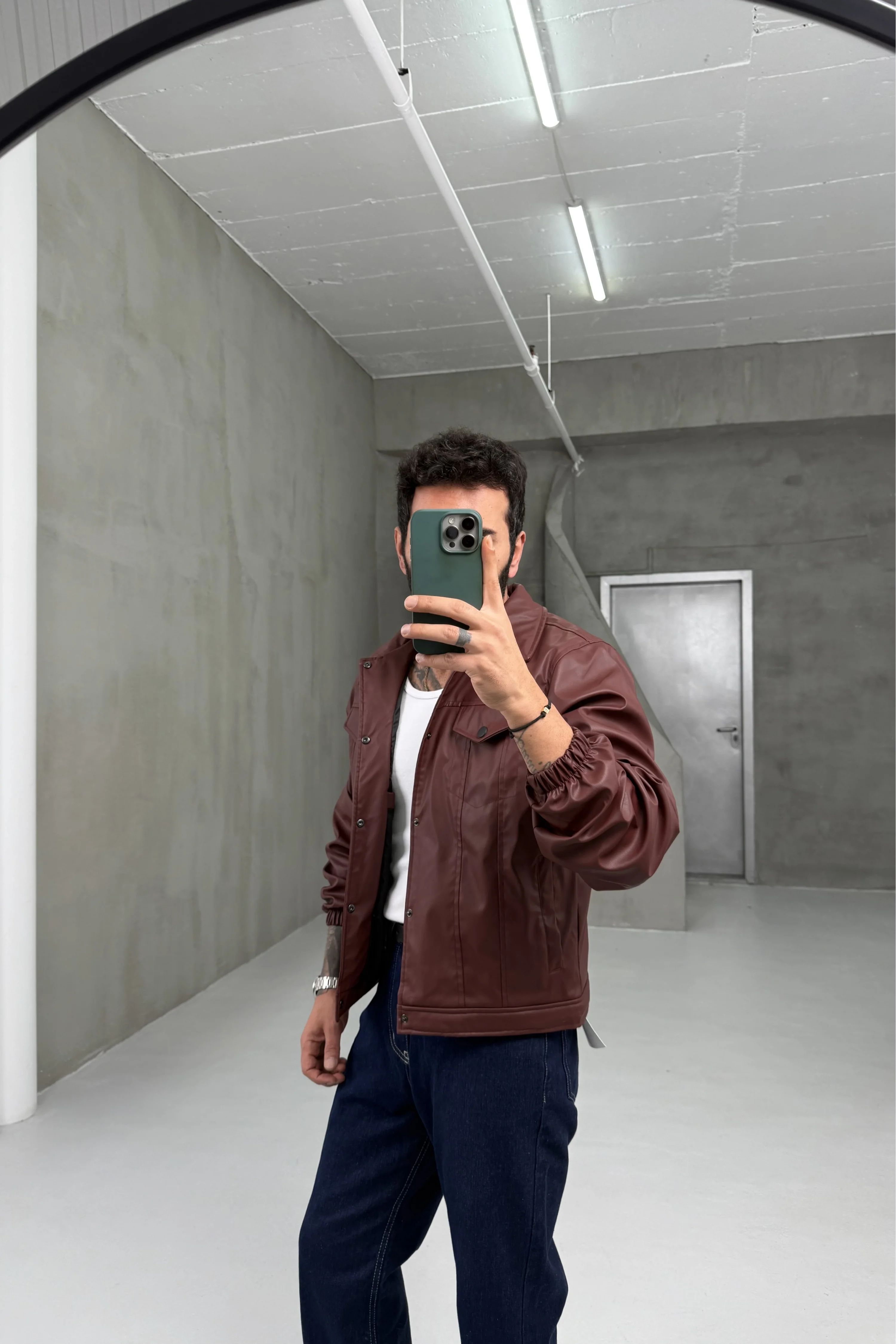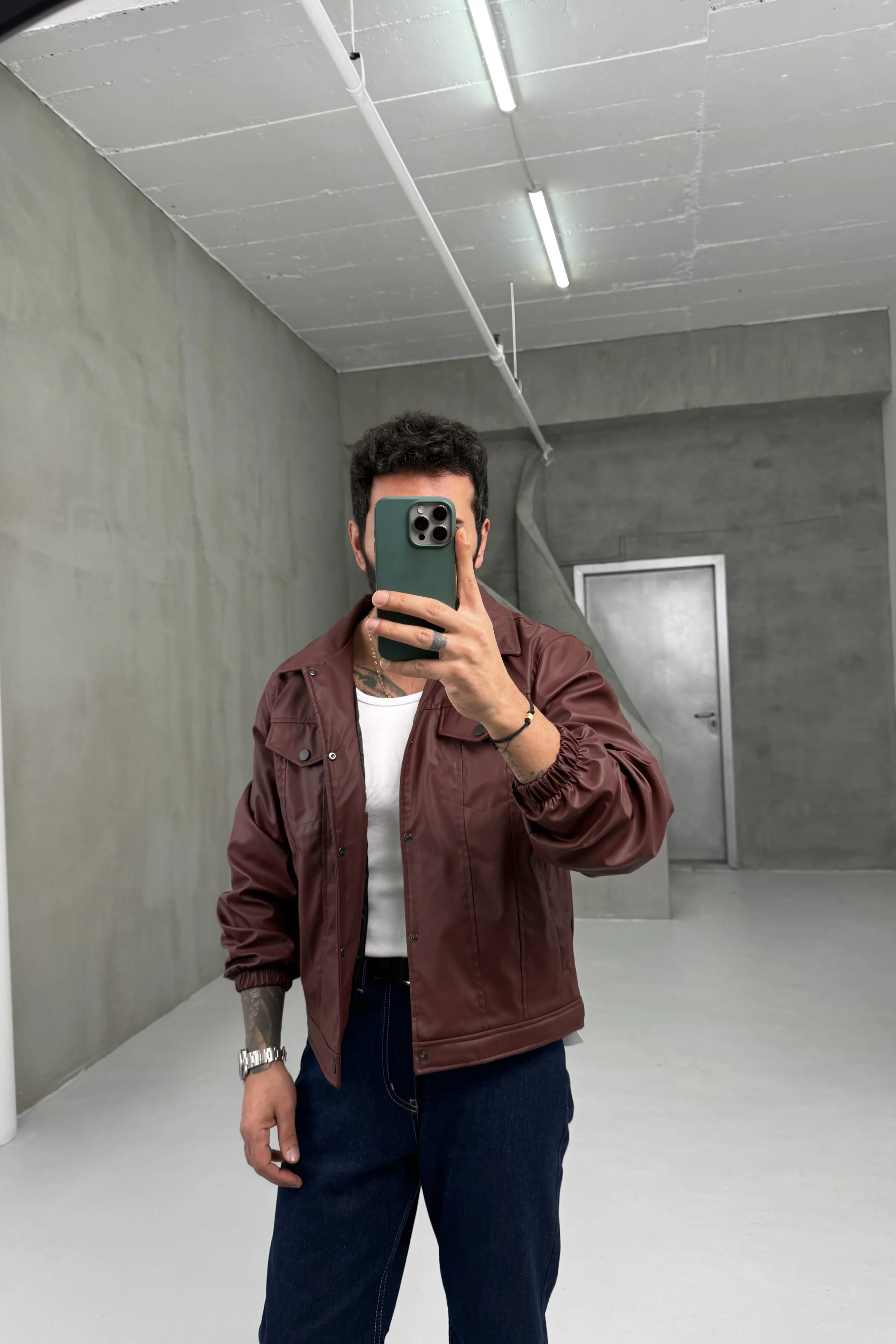 Kahve yüksek kalite deri mont
