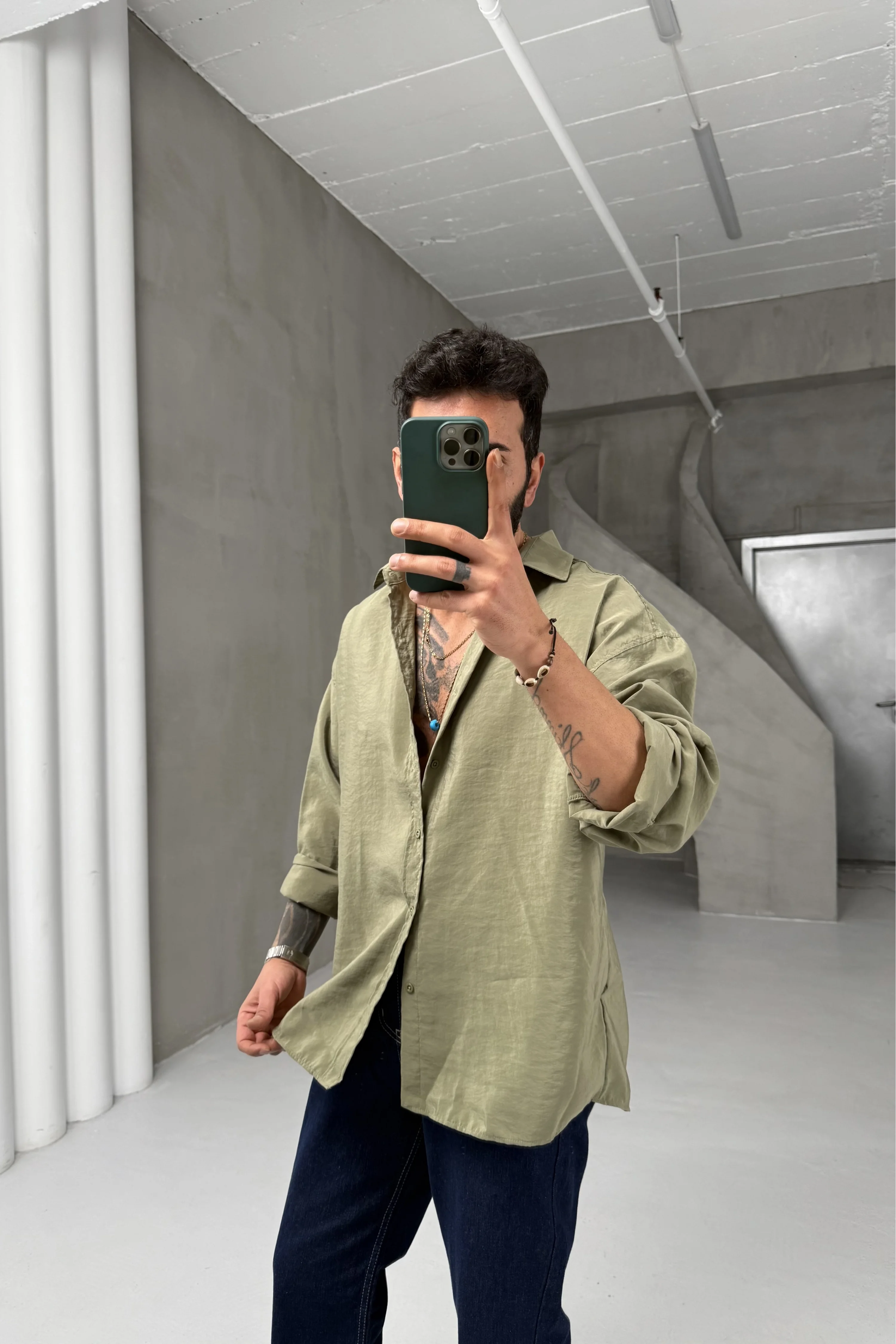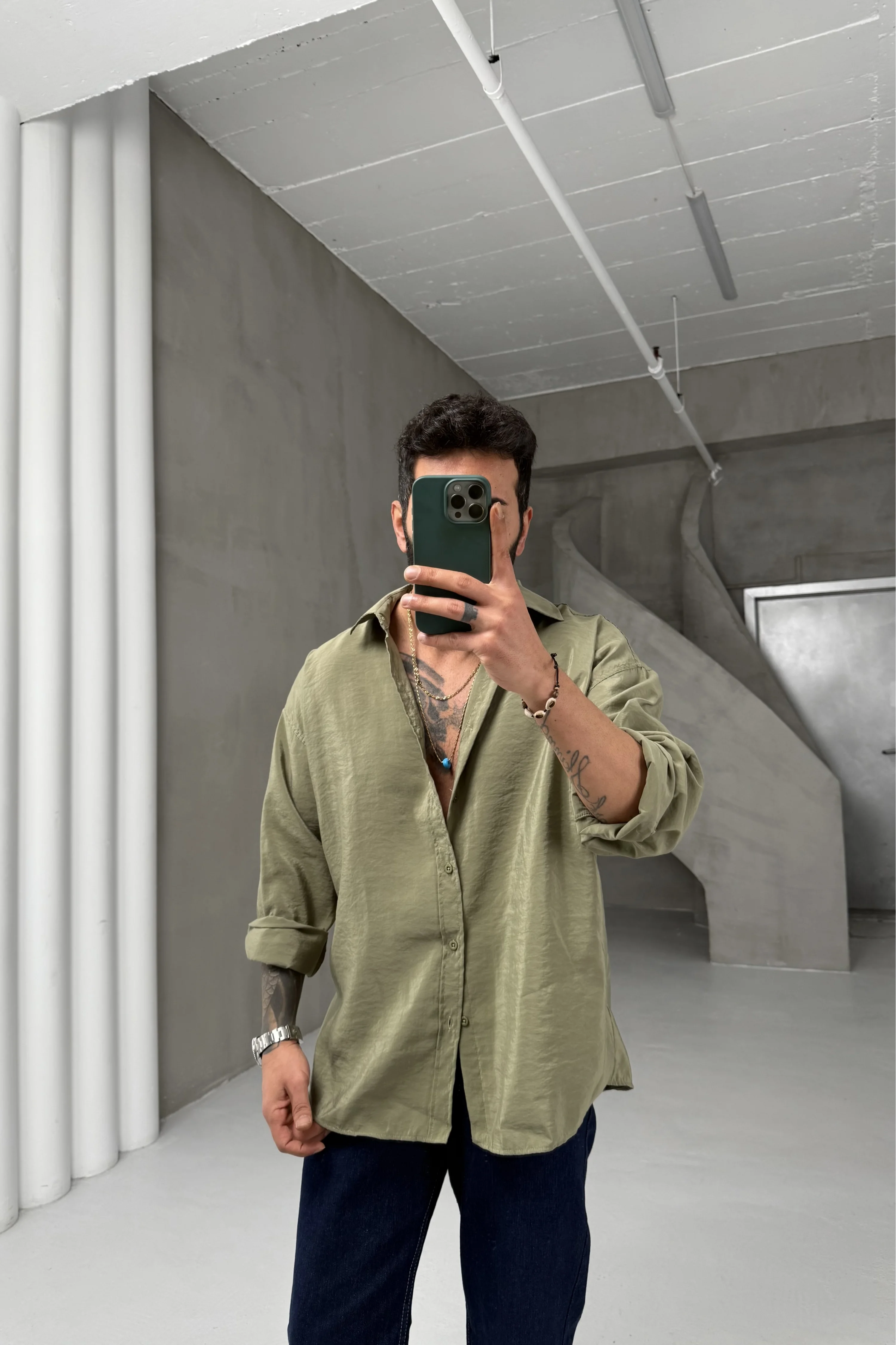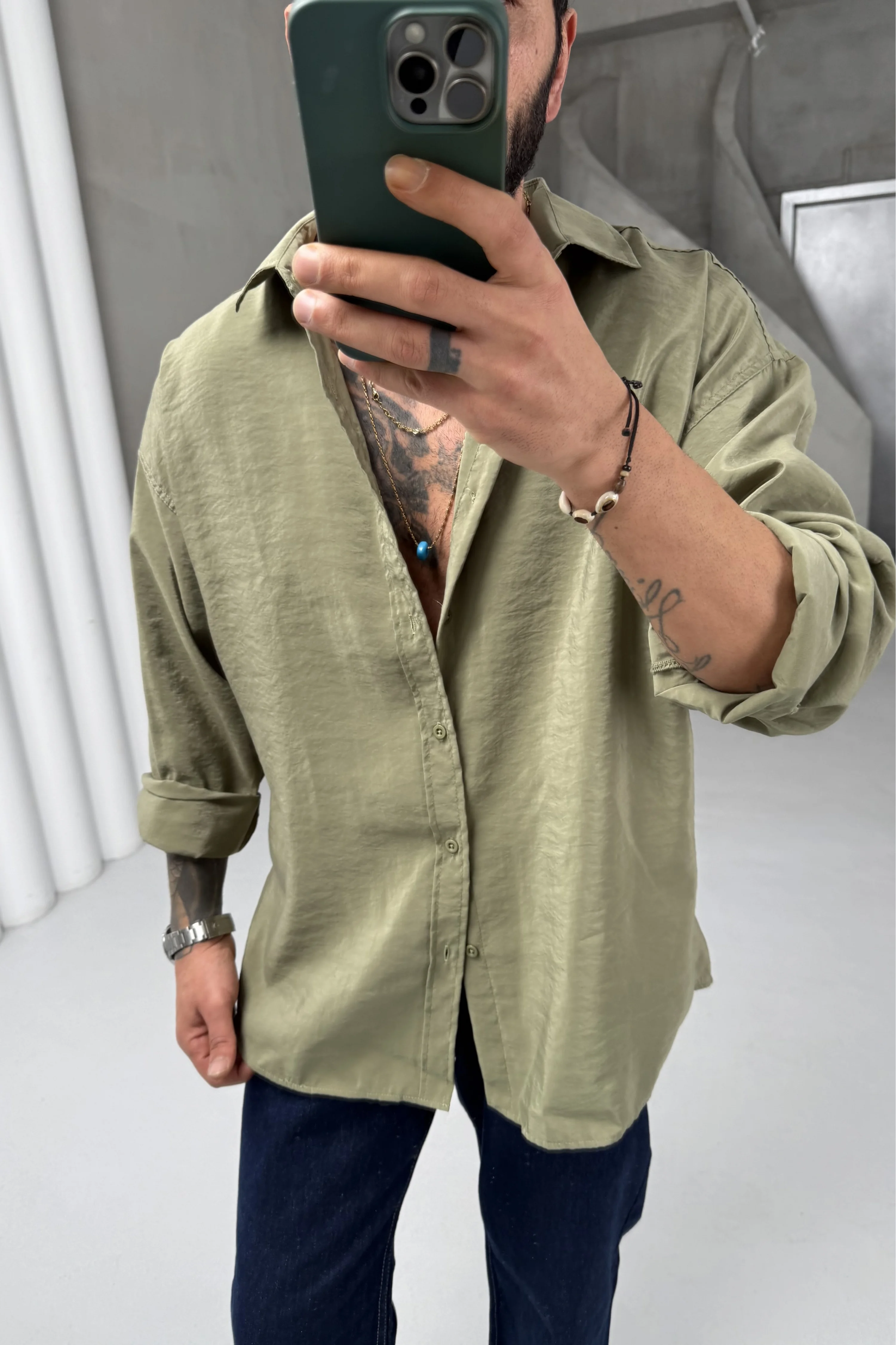 Haki Yeşili Modal Gömlek