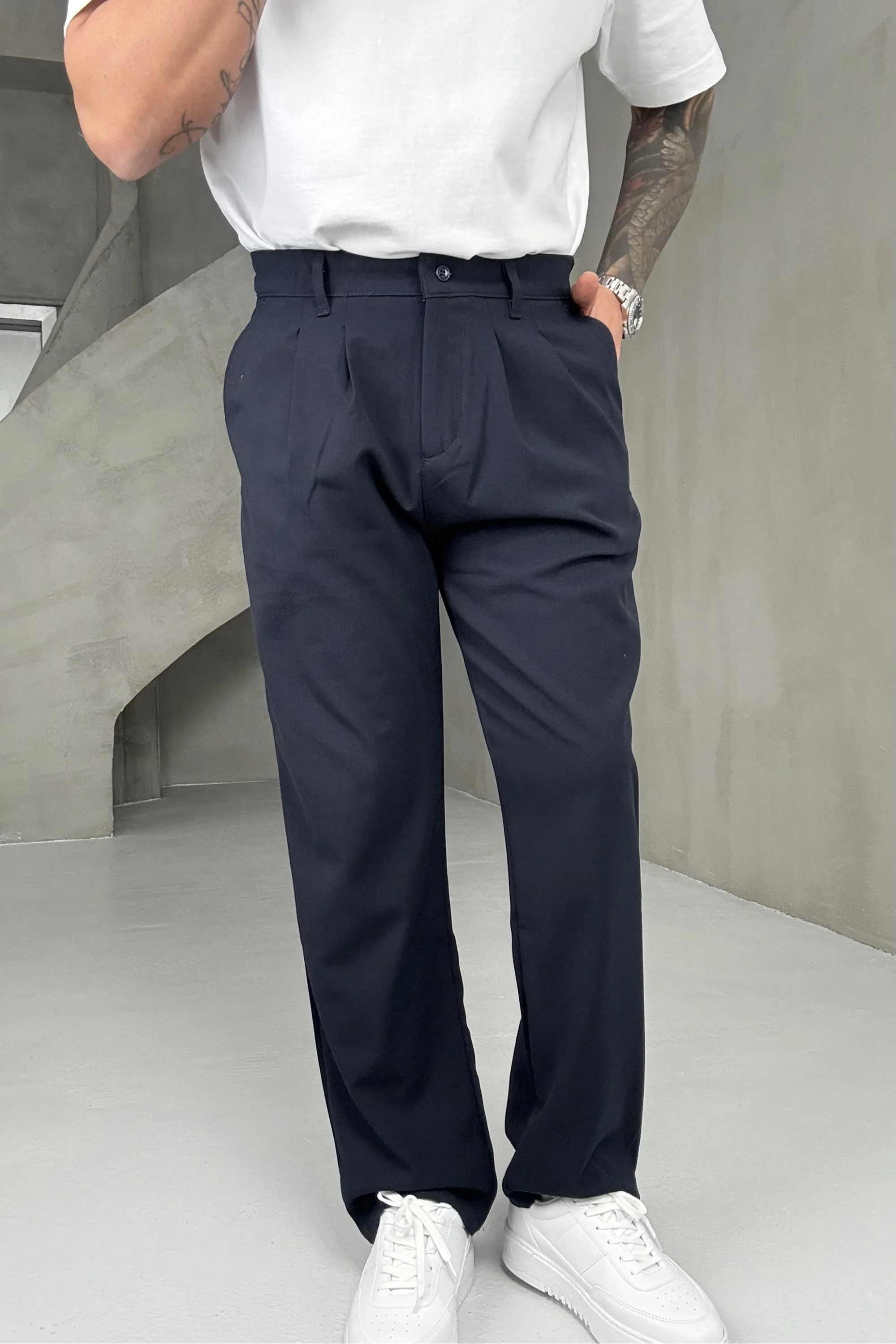 Lacivert keten pantolon