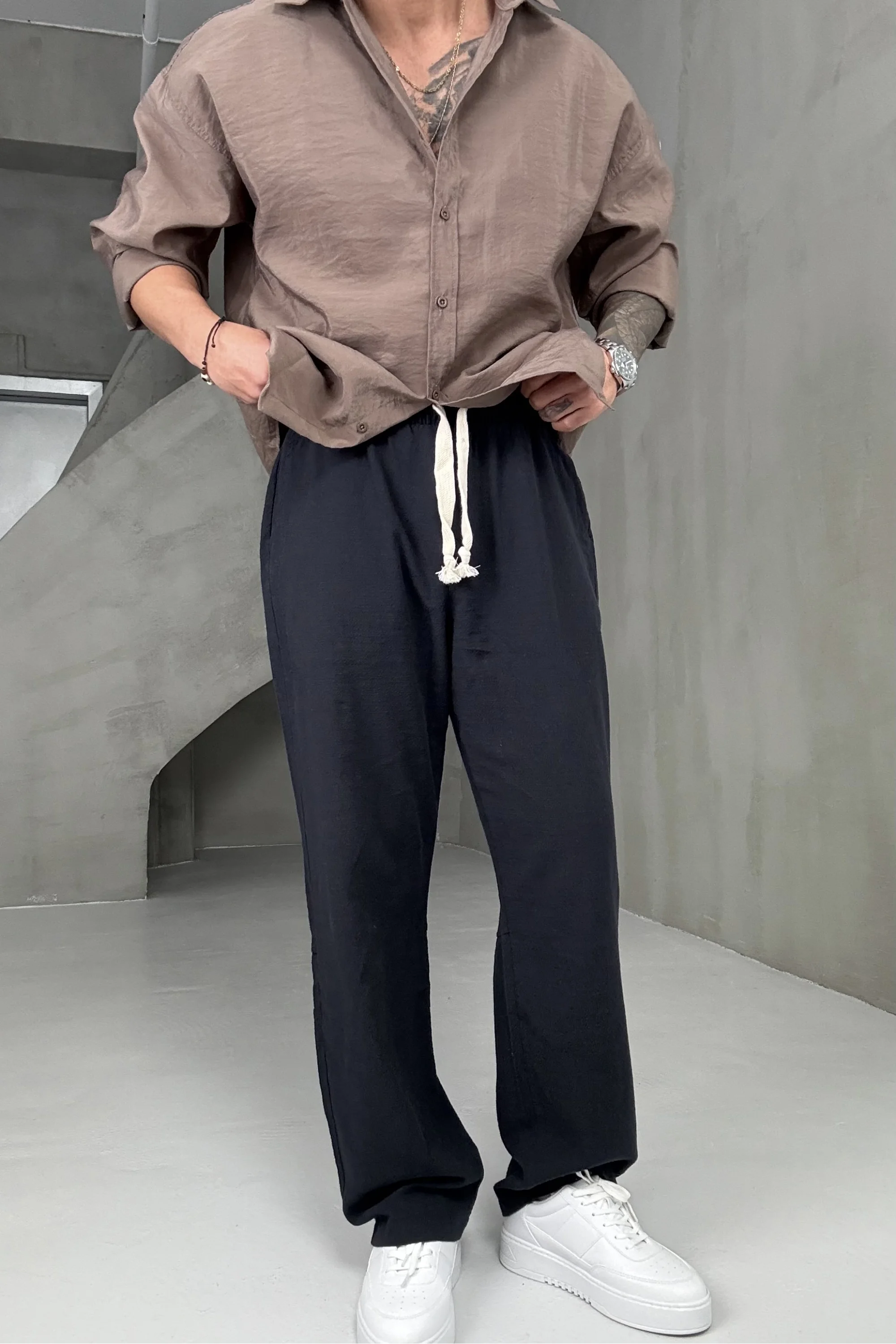Siyah keten pantolon