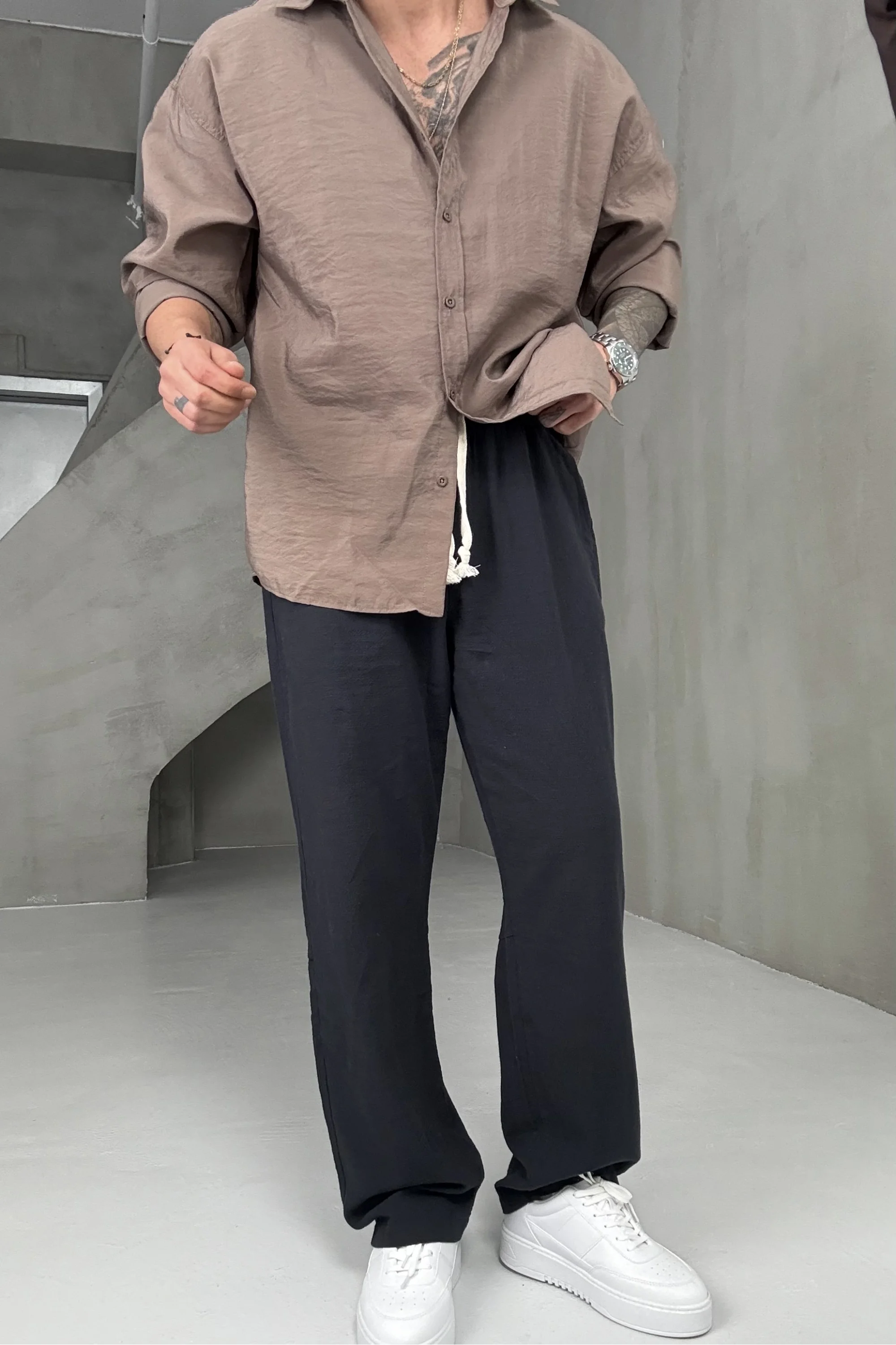 Hafif keten dokusu sayesinde gün boyu nefes alır, bol kesimiyle maksimum konfor sunar.