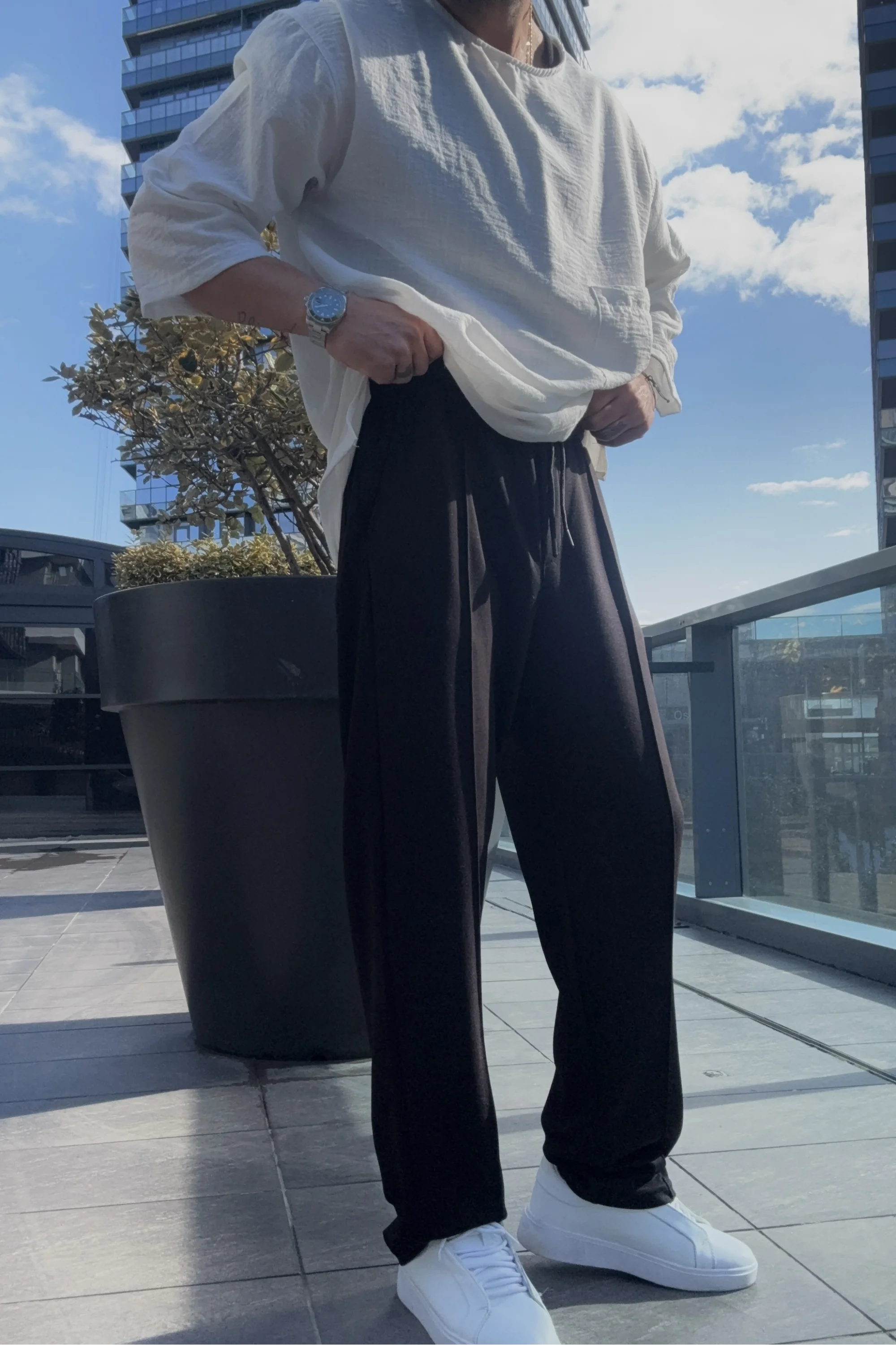 Siyah keten pantolon