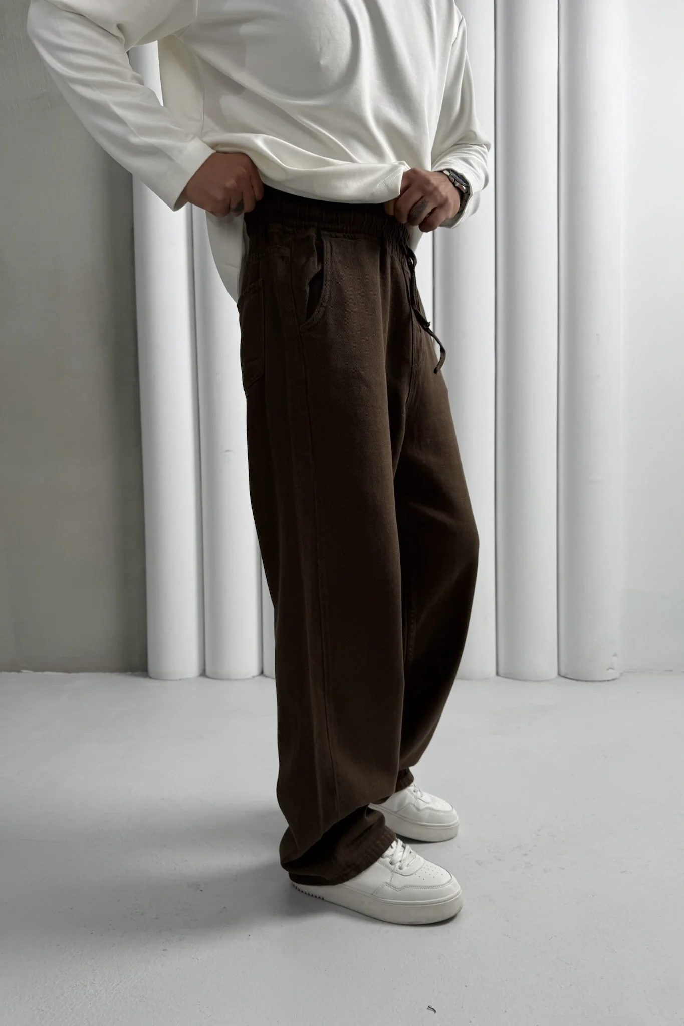 Yüksek Kalite Gabardin Baggy Kahverengi